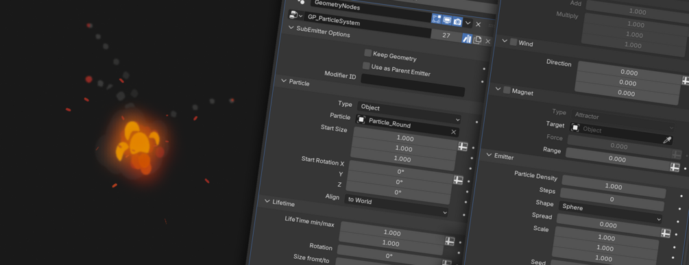- "GP_ParticleSystem" : a .blend with the particle system node tree and object ready to be tweak.